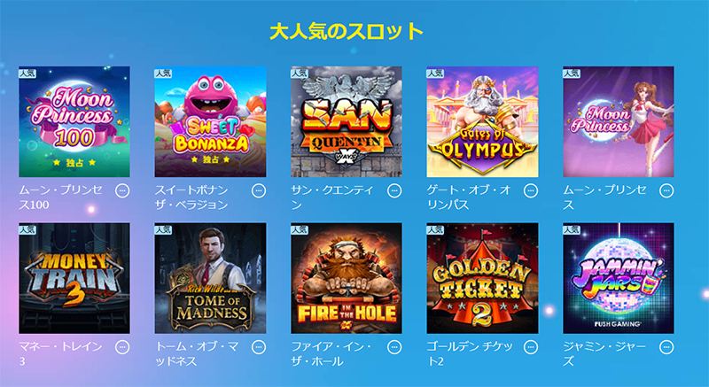 迷ったら『Moon Princess』や『Sweet Bonanza』など人気の定番スロットを選んでおくのが無難です。
