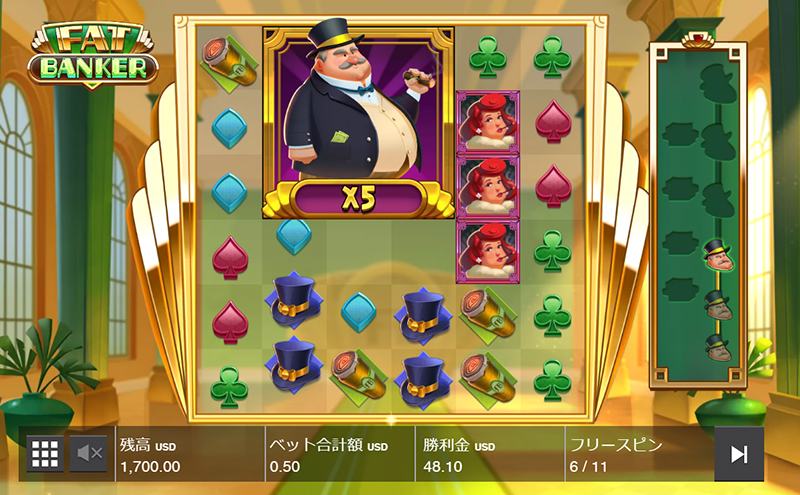 マルチプライヤーとは倍率のことです。フリースピン中の配当は「通常配当×マルチプライヤー倍率」によって計算されます。フリースピンでのプレイを通じてマルチプライヤーが上昇すると、フリースピン終盤に一気に特大の賞金も獲得可能です。