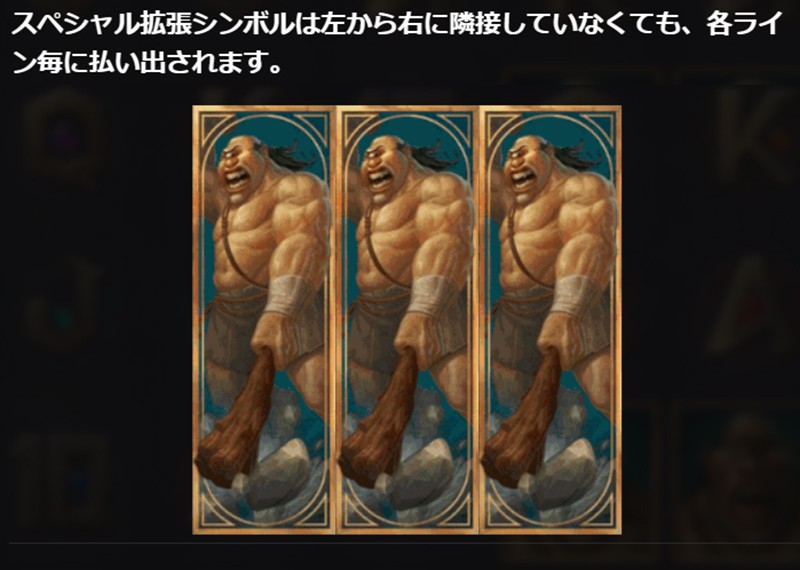 特大ワイルドシンボルはリールの大部分を占有するワイルドシンボルです。ワイルドシンボルはすべての配当シンボルを代用するので、ワイルドシンボルの面積が大きくなれば一気に大当たりも期待できます。