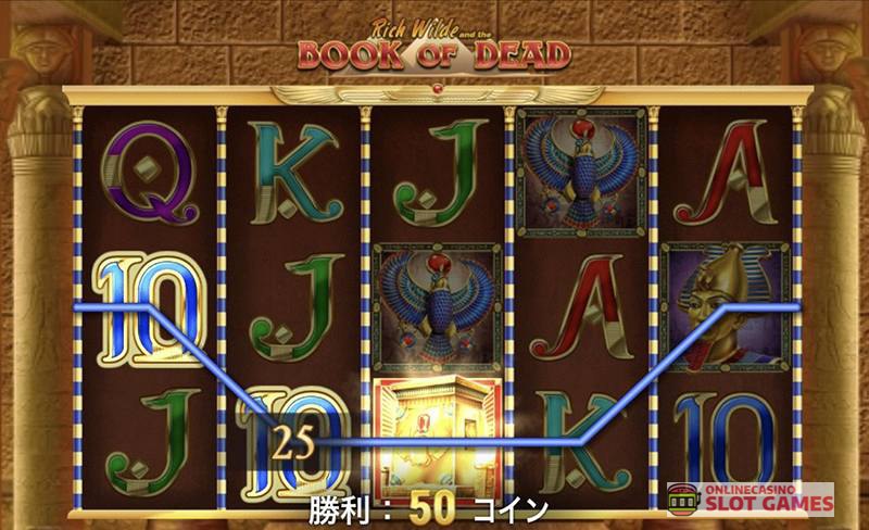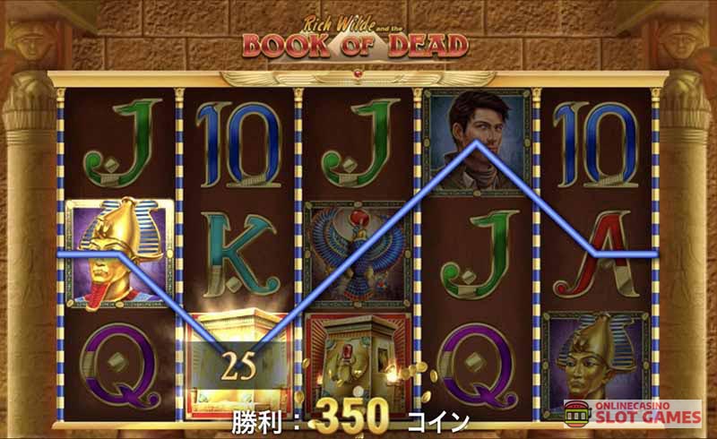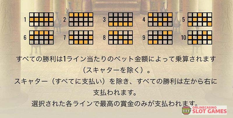 ブックオブデッドは10通りのペイラインがあり、このペイライン上に同じシンボルが揃うと当たりとなります。ただし次のようなルールがあります。