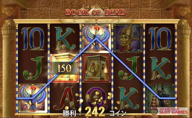ブックオブデッドにはマルチプライヤーがありませんし、リール回転式のスロット なので配当発生の連鎖もありません。