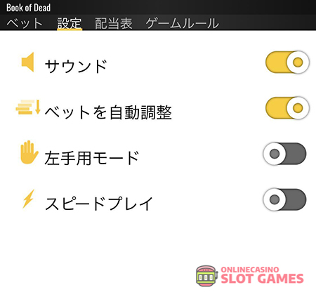 ブックオブデッドはゲームプレイの前に次のような設定ができます。