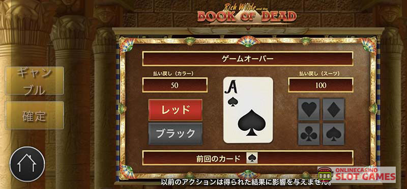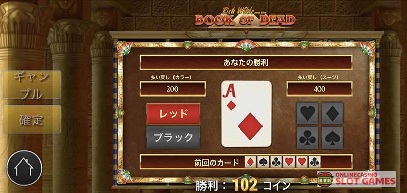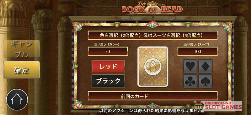 ブックオブデッドのギャンブル機能とは、配当が発生した時に配当金を増やすチャンスがあるゲームのことです。