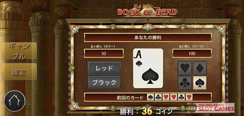 ブックオブデッドには通常のベースゲームで「ギャンブル機能」というものがあります。