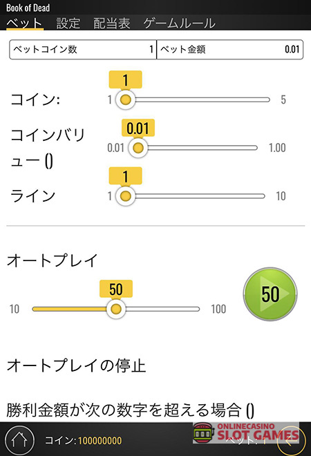 まずはブックオブデッドの賭け金を設定する画面を見てみましょう。
