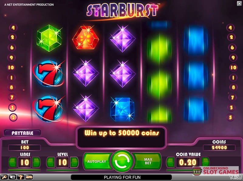 オンラインカジノのスロットの名作と言われるのがこのスターバースト スロット。極力シンプルな構成で、オンラインスロットの代表的な機能であるフリースピンもないという設定です。